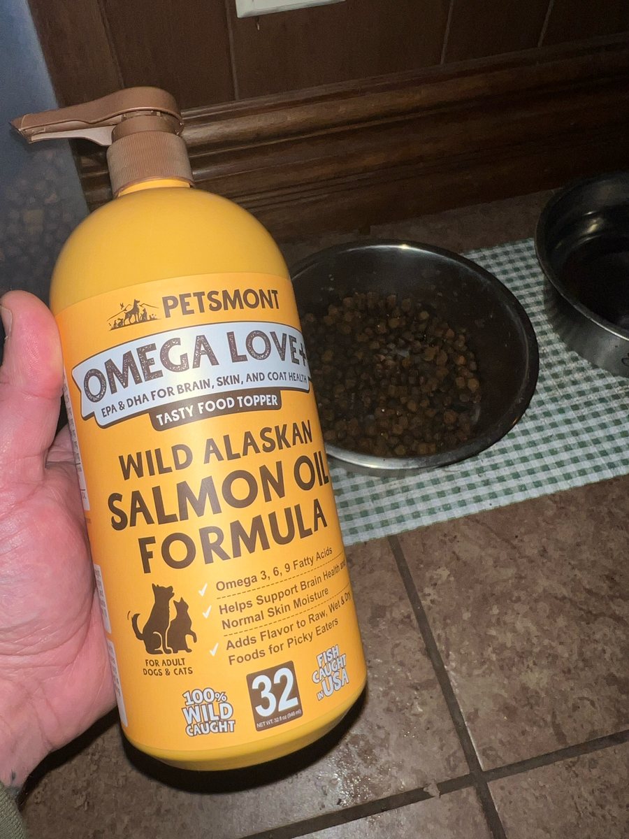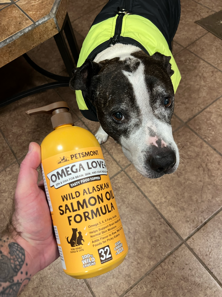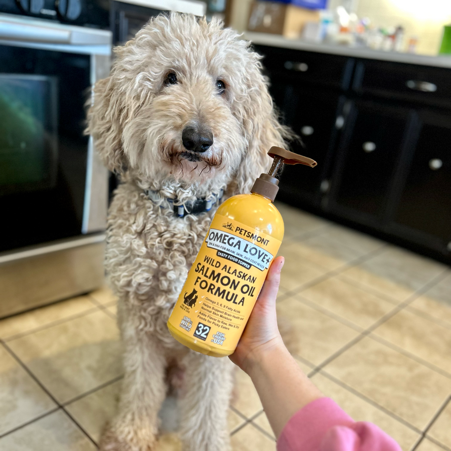 The Petsmont Wild Alaskan Salmon Oil Formula might be what you need. This mix helps stop your dog from chewing their feet. It also makes their skin itch less and their fur look great. It uses oils from Wild Alaskan Salmon and Pollock, full of Omega 3 fats. These fats make your dog's skin stronger and help them fight off the itchy feeling.