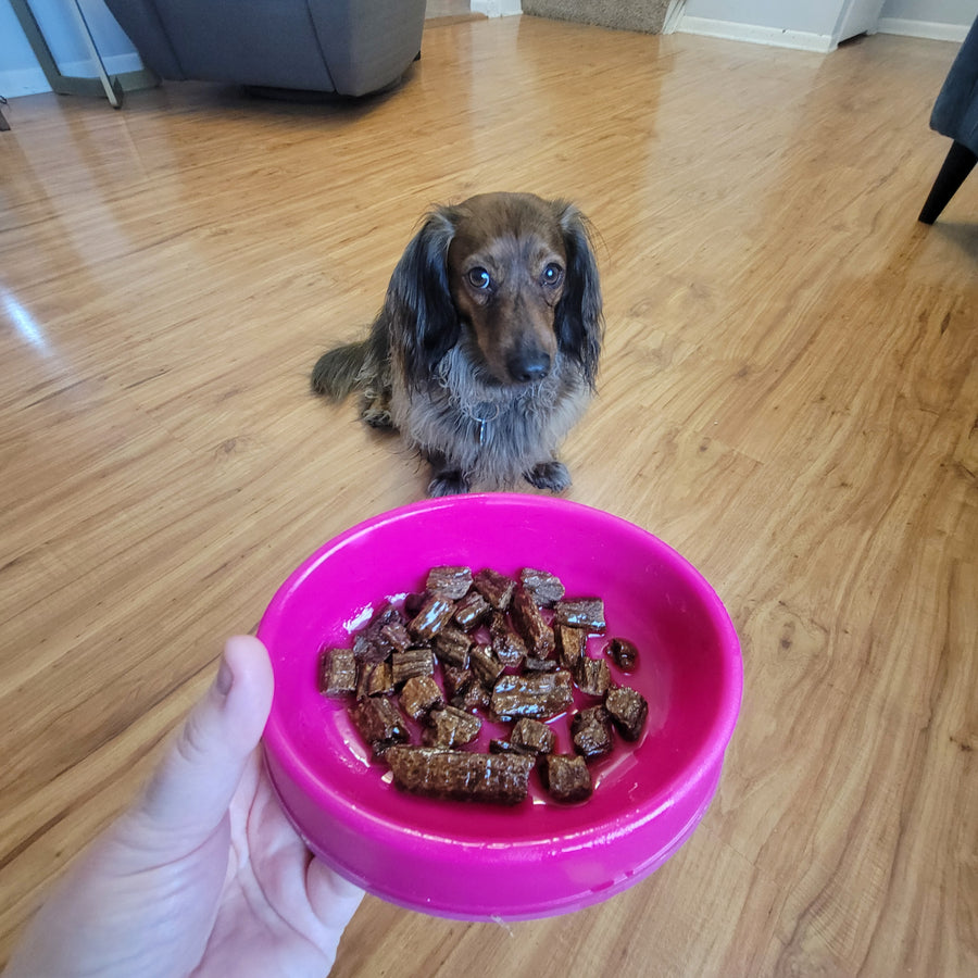 Transform your pet's bowl into a feast they can't resist! Just pump our formula over their food and watch their tail wag with excitement.